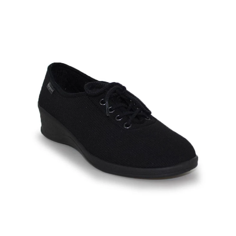 Fargeot propose ces chaussures en toile au confort irréprochable. Leur tige en textile extensible s’adaptera à l’anatomie du pied sans le comprimer. La doublure en éponge est idéale pour absorber la transpiration et apporter un confort optimal. La construction souple, la légèreté et le talon compensé de 4,5 cm de ces chaussures sont d’autres atouts pour assurer le bien-être de vos pieds au quotidien. Un bon modèle fabriqué en France qui conviendra aux pieds forts et ou sensibles.